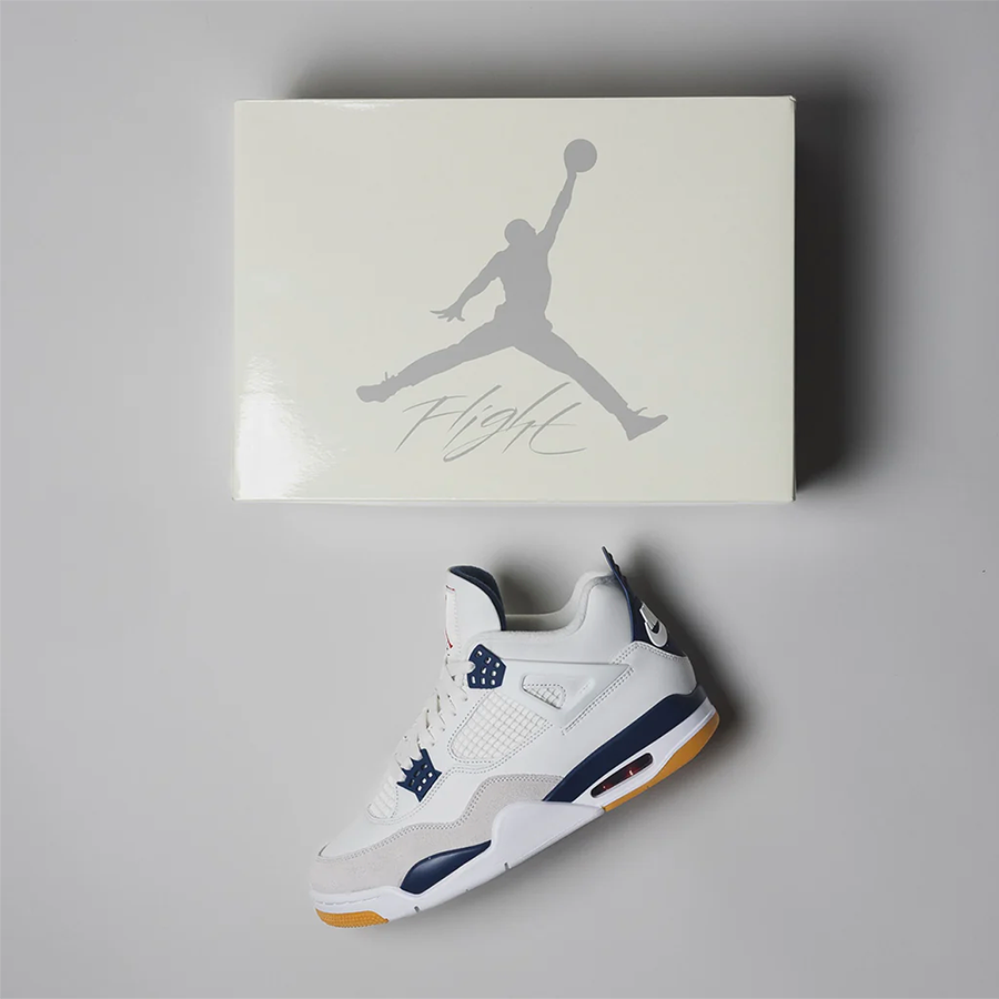 ナイキSBとエアジョーダン4の新作としてリリースされ、スニーカーヘッズたちから注目を集めた2023年発売のNike SB Air Jordan 4 "Pine Green"に続いて、今回は鮮やかで深みのあるネイビーをまとった新作SB AJ4がリリース。