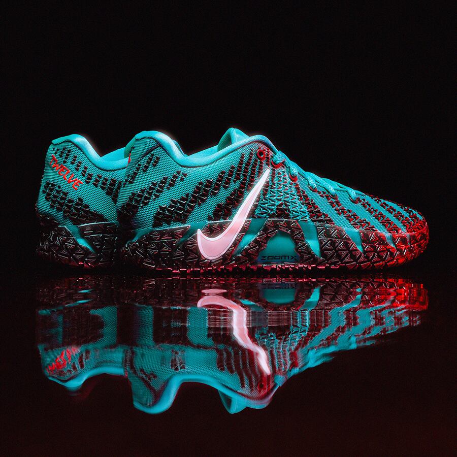 ミッドソールには最新のクッション素材"ZOOM X"フォームを敷き詰め、爆発的なレスポンスを引き出す。