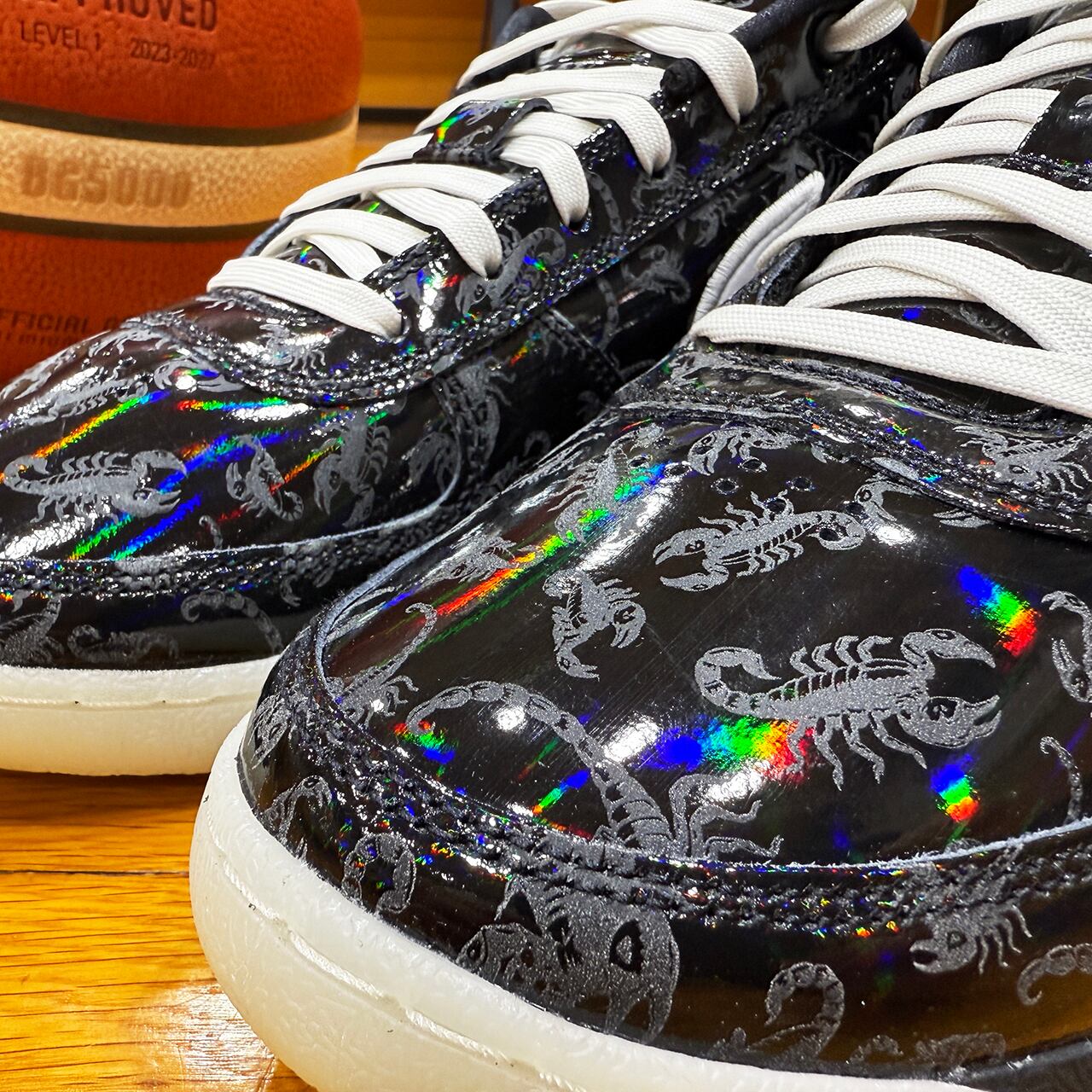 2025年の"ハロウィン"カラーは、艶やかなブラックパテントとホワイトのベーシックなカラーながら、光の当たる角度で虹色の輝きを放つホログラム仕様。