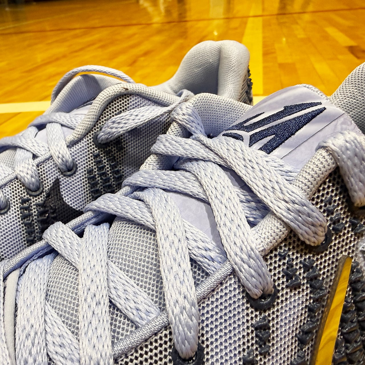 アッパーは氷のようなブルーでまとめ、煌びやかに輝くスウッシュをオン。