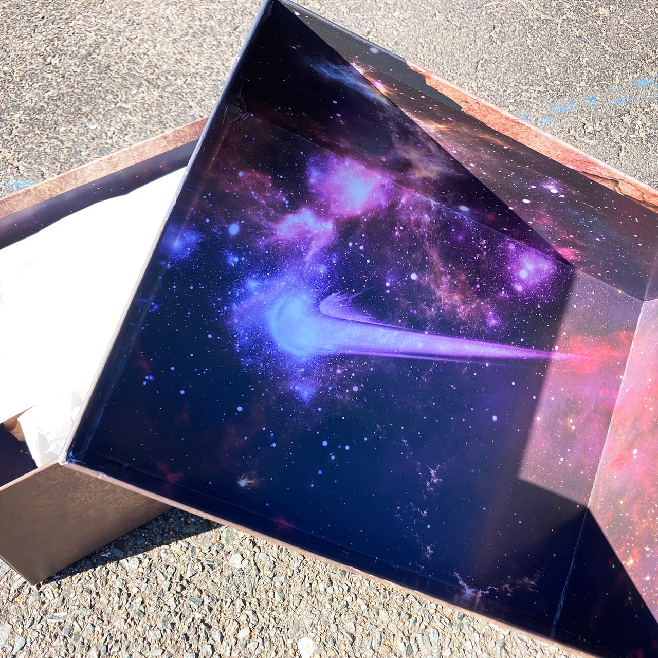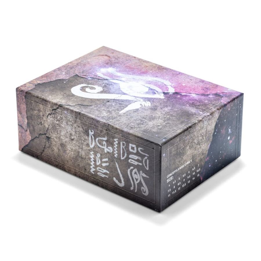 またアウトソールのパープルはピラミッドから上る朝日を、シュータンの"CONCEPTS"のロゴは風化が進む以前のスフィンクスの鼻の形状をイメージしたもの。