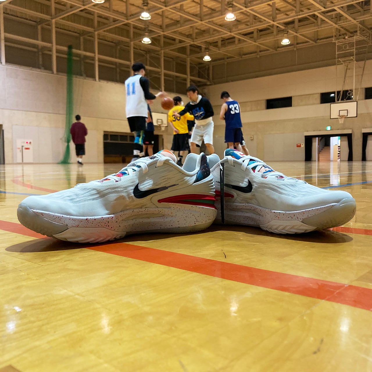 ナイキ エア ズーム G.T. カット 2は、地面との一体感のあるデザインで、方向転換時にコートとの接触を最小限に抑え、急停止とオープンスペースへの加速をサポート。
