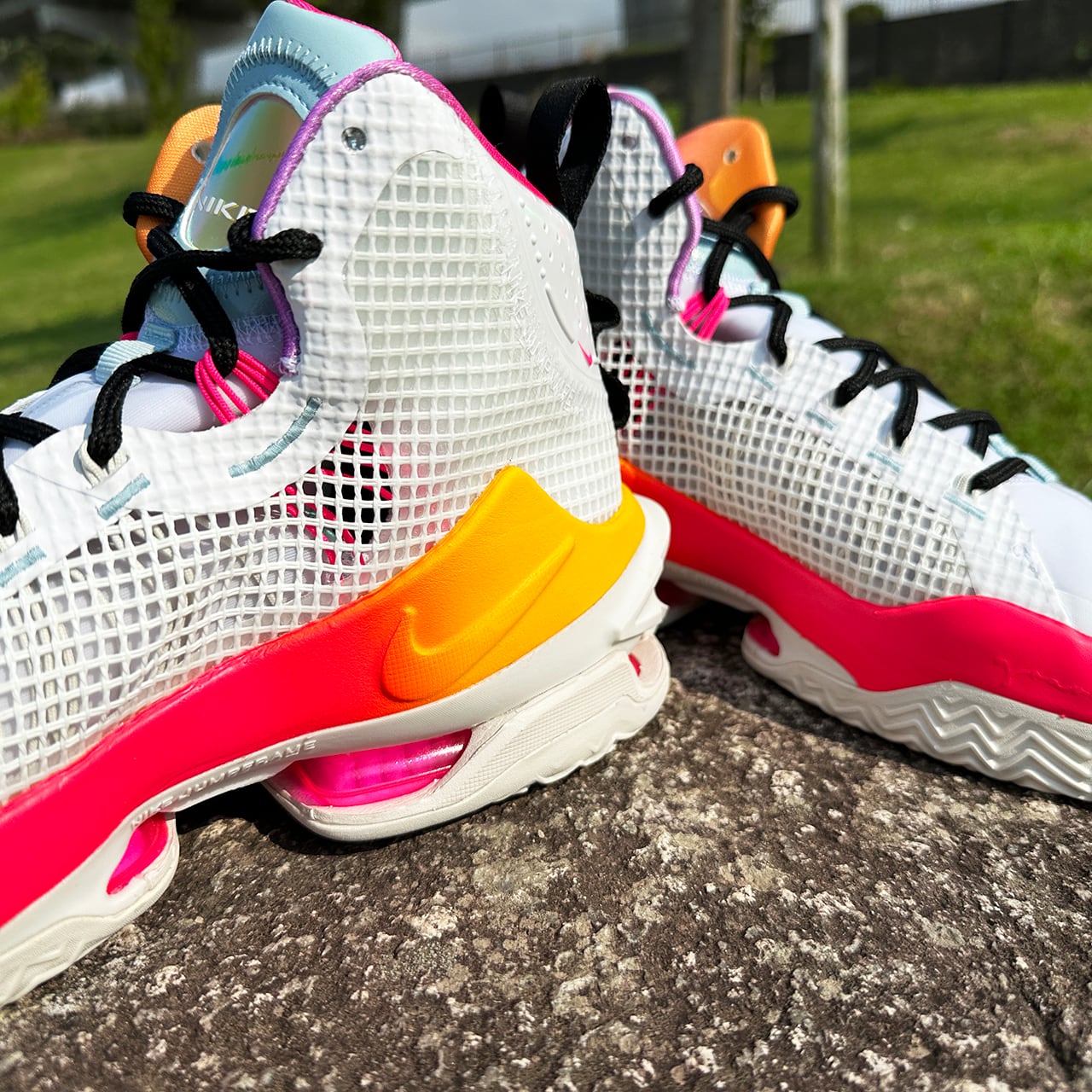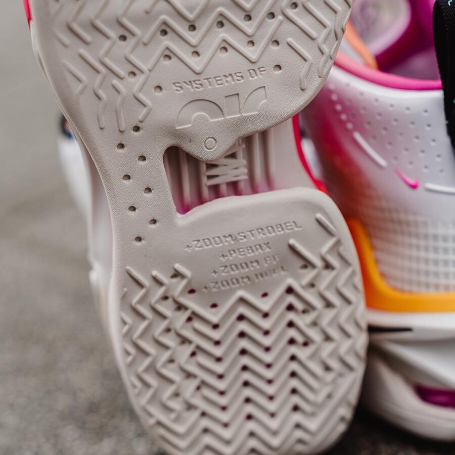 非常に高い反発力を発揮するクッショニングシステムを搭載しており、フルレングスのAir Zoom Strobelユニット (足の真下) に加え、ヒールと前足部にZoom Airユニットを搭載した2重構造となっています。 これに超軽量で弾力性に優れた外側のジャンプフレームをプラスし、重力をものともしない履き心地を実現。