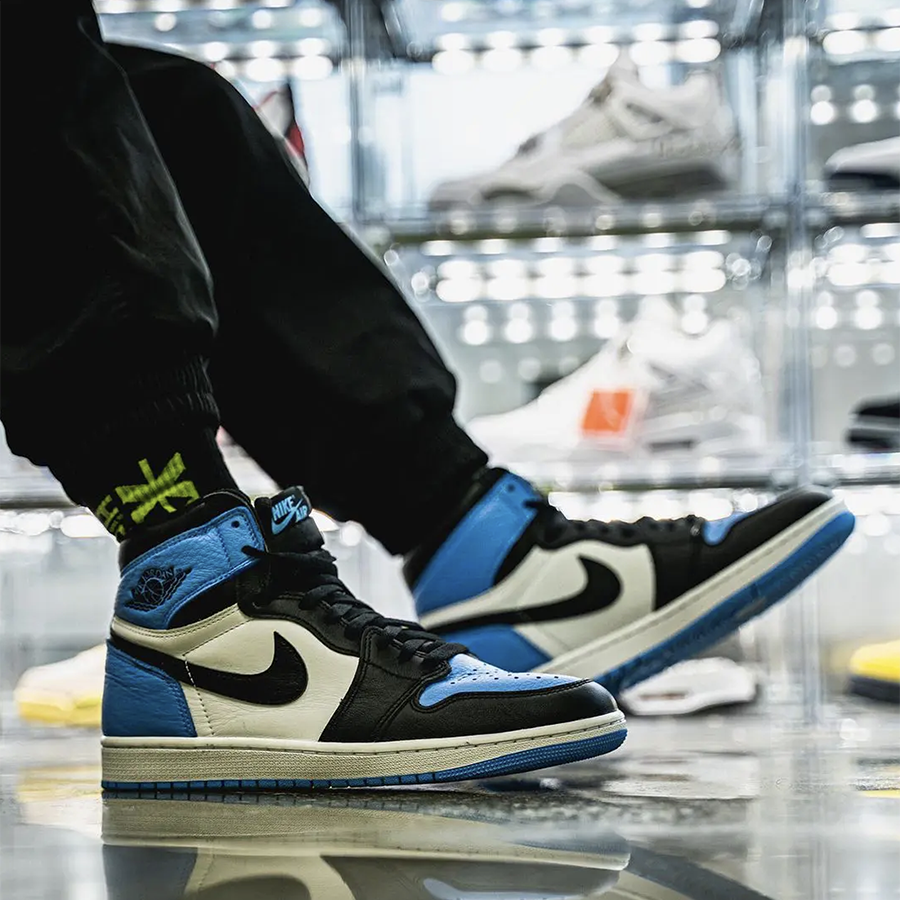 ホワイト&ブラックの組み合わせに人気の高いユニバーシティブルーカラーを落とし込み、海外では“UNC Toe”とも称される誉高い一足だ。